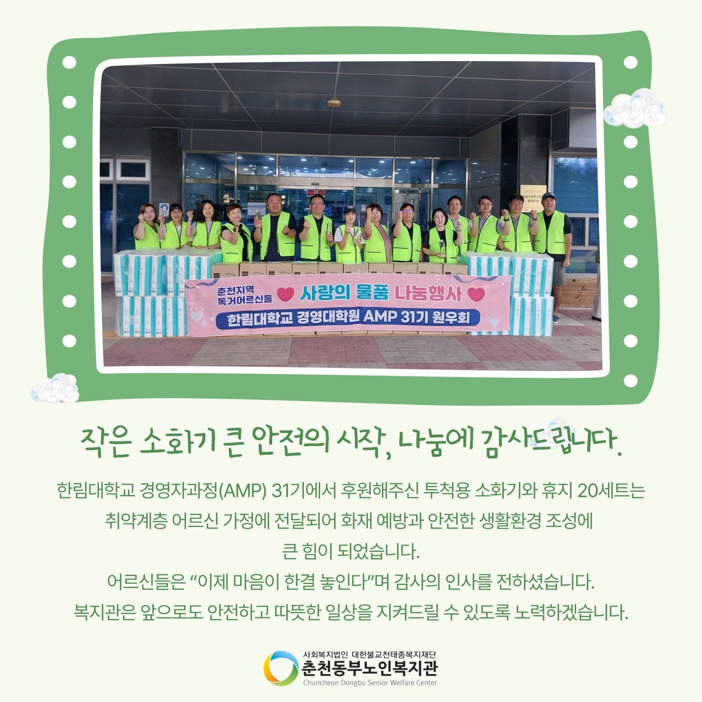 [나눔소식] 한림대학교 경영자 과정(AMP)31기생 투척용 소화기 및 휴지 20세트
