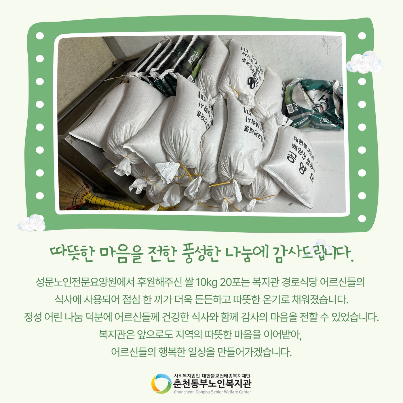 [후원소식] 성문노인전문요양원 쌀10kg 20포 후원