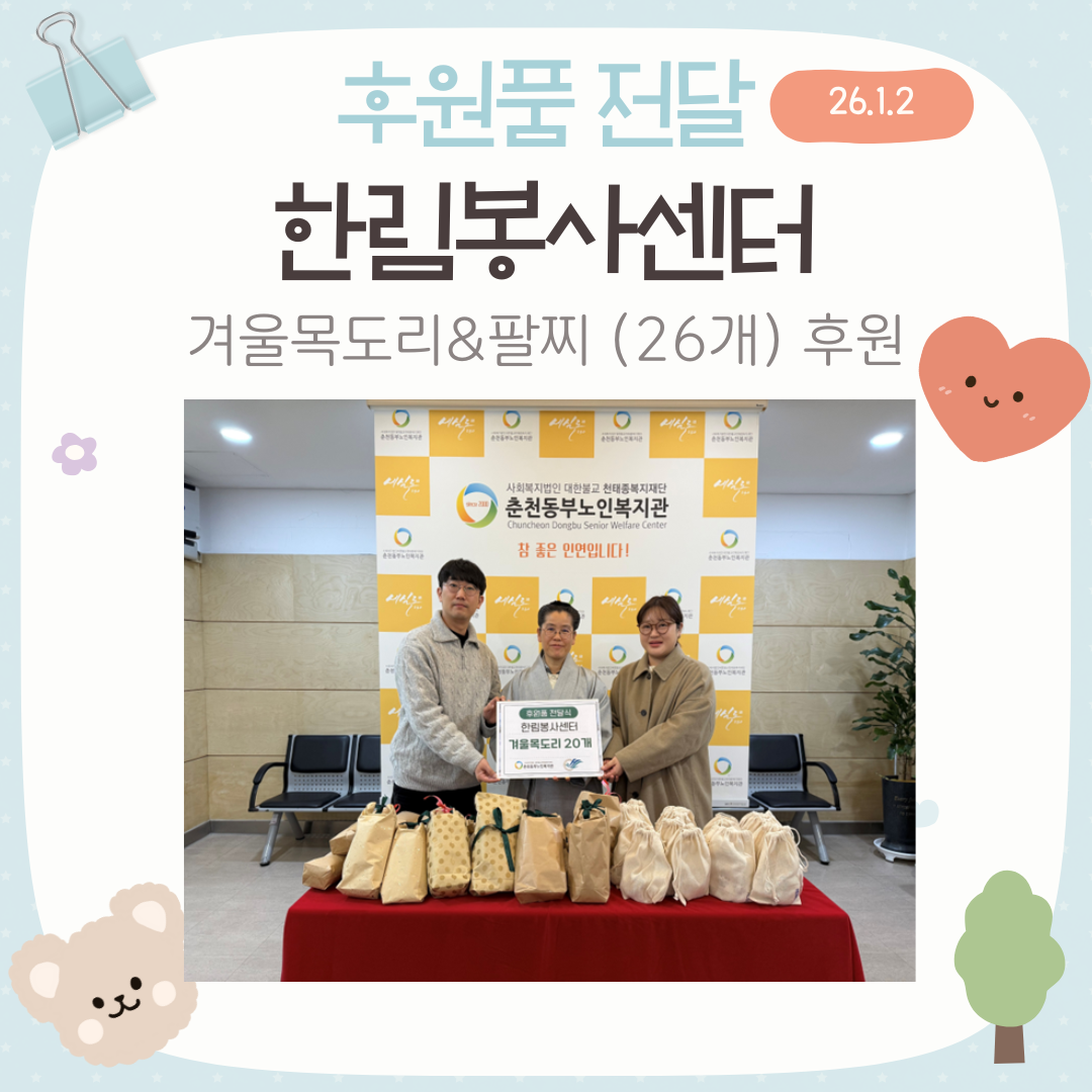 - 다음글 [후원] 한국산불방지기술협회 강원지회 후원품(장롱 2개) 전달 2026.01.30