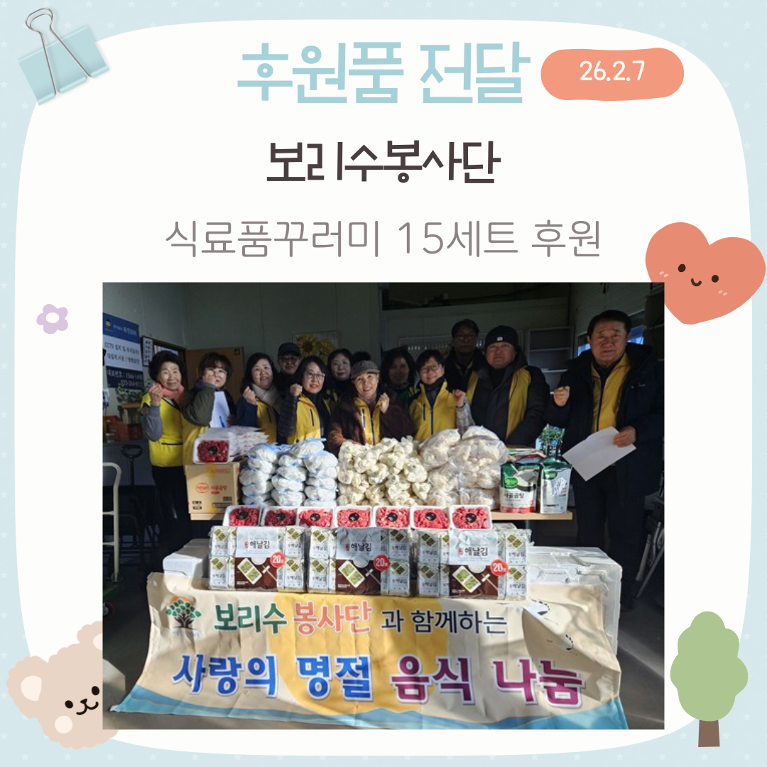 [후원] 보리수봉사단 후원품(식료품꾸러미 15세트) 전달