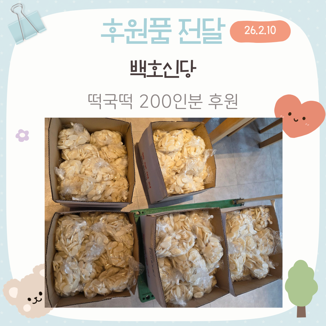 ○ 내 용 : 백호신당에서 떡국떡 200인분을 후원해주셨습니다.