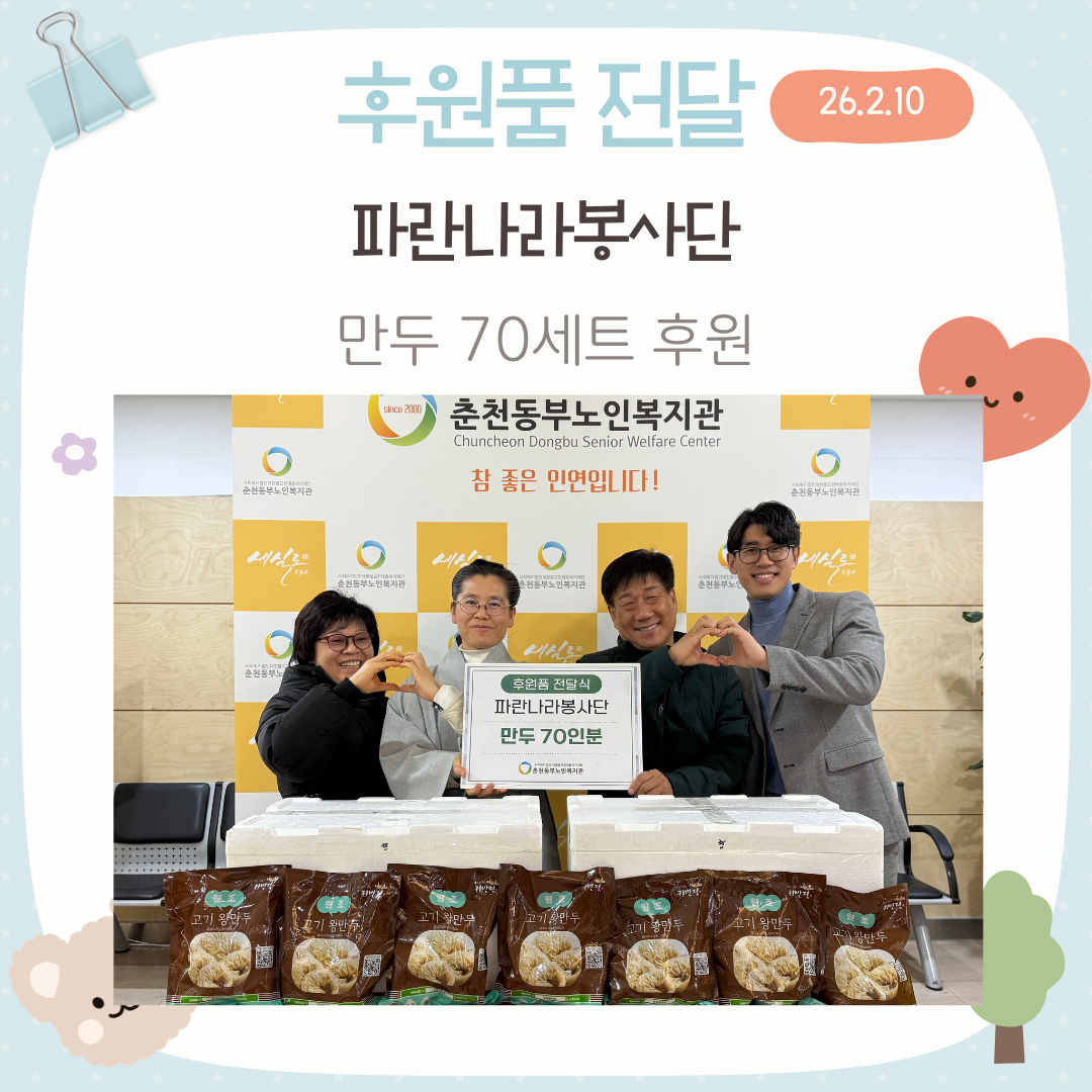 - 다음글 [후원] 강원디자인진흥원 후원품(약과 21박스) 전달 2026.02.27