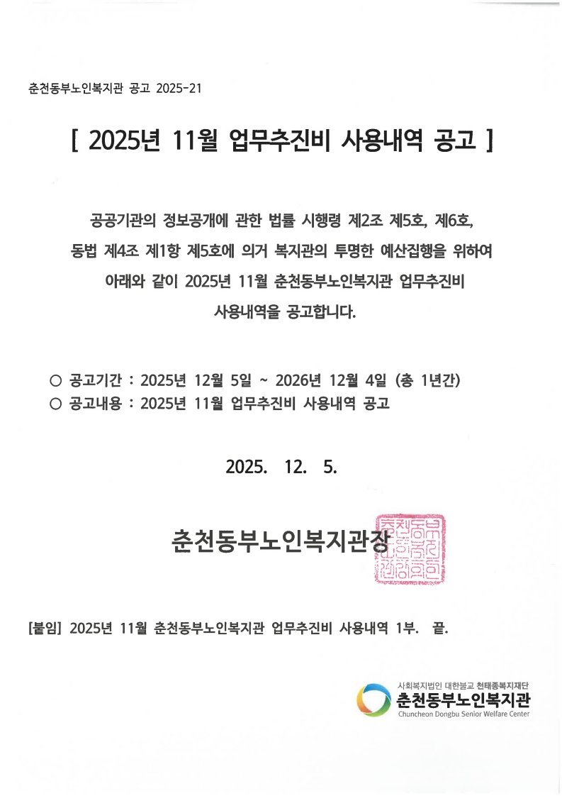 공지 [재정공고] 2025년 11월 업무추진비 사용내역 공고