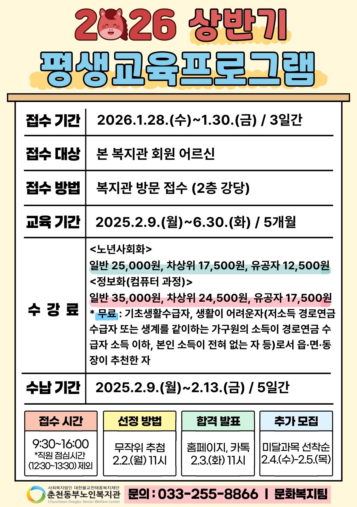 ※문의사항 : 033-255-8866 / 문화복지팀