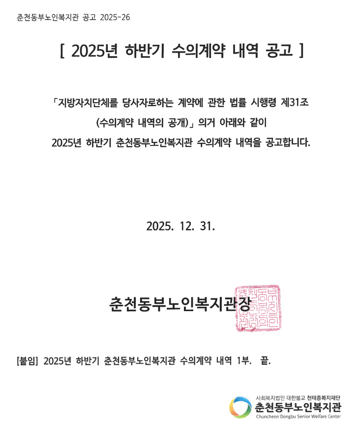 [수의계약 공고]2025년 하반기 춘천동부노인복지관 수의 계약 공고