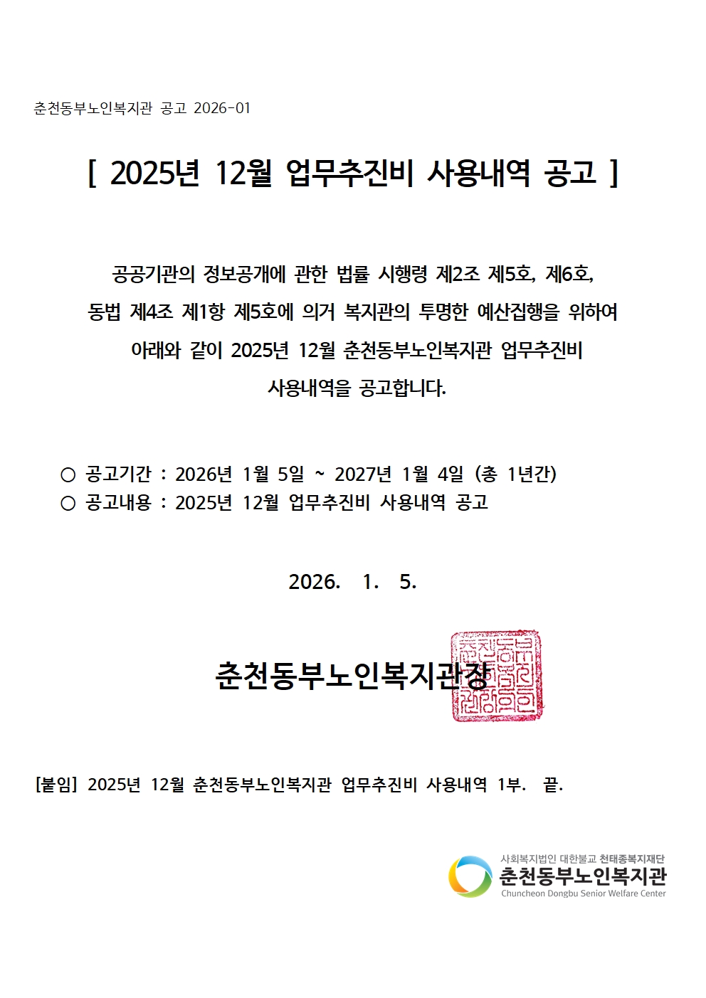 공지 [재정공고] 2025년 12월 업무추진비 사용내역 공고