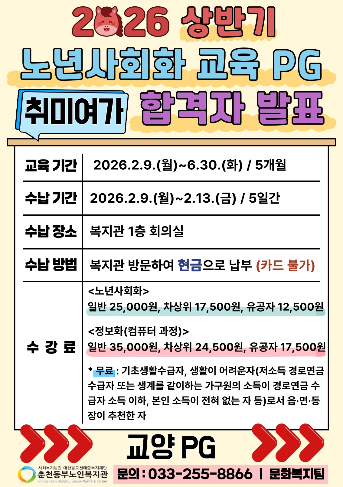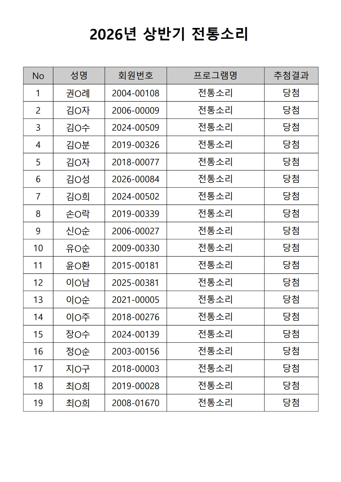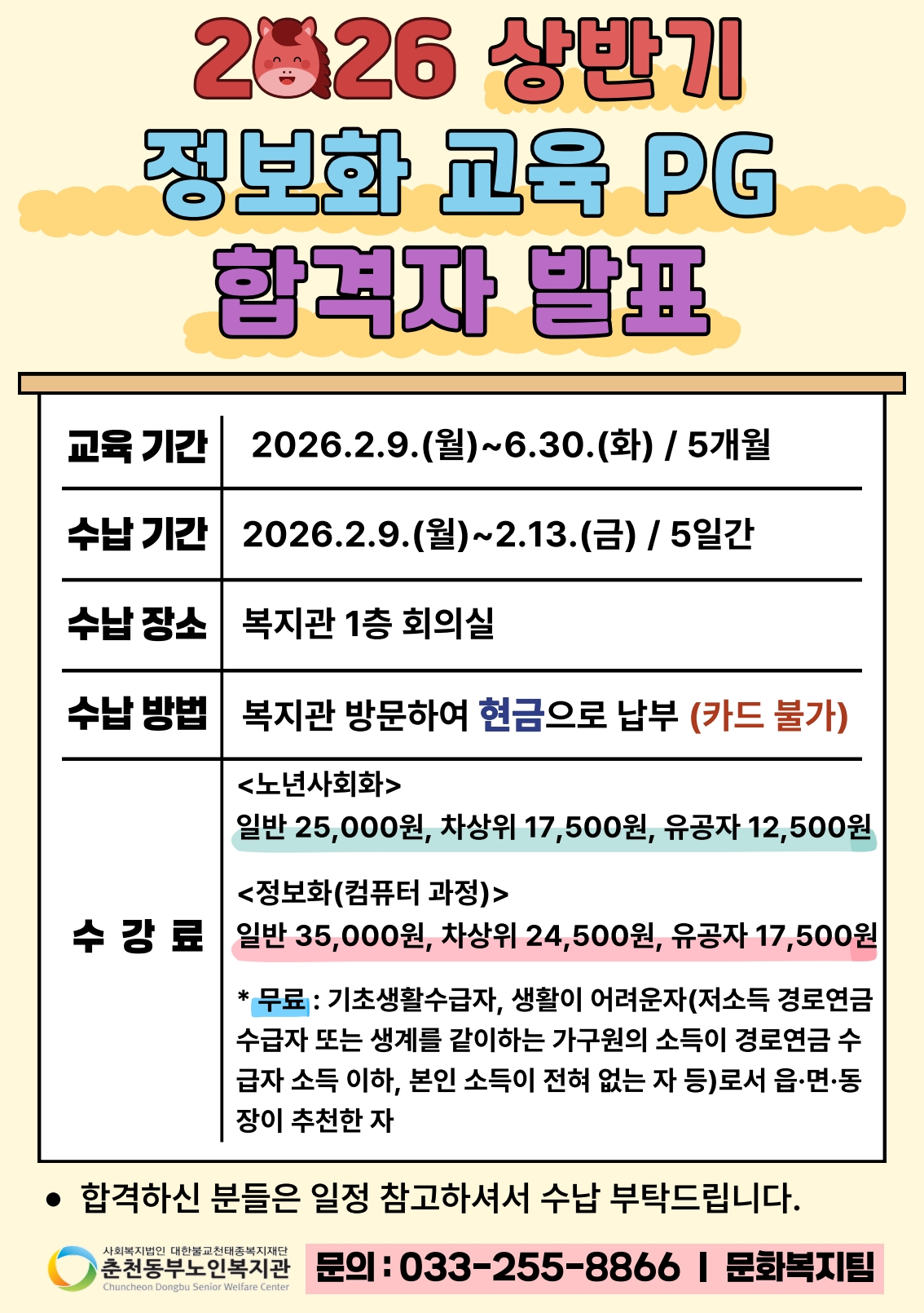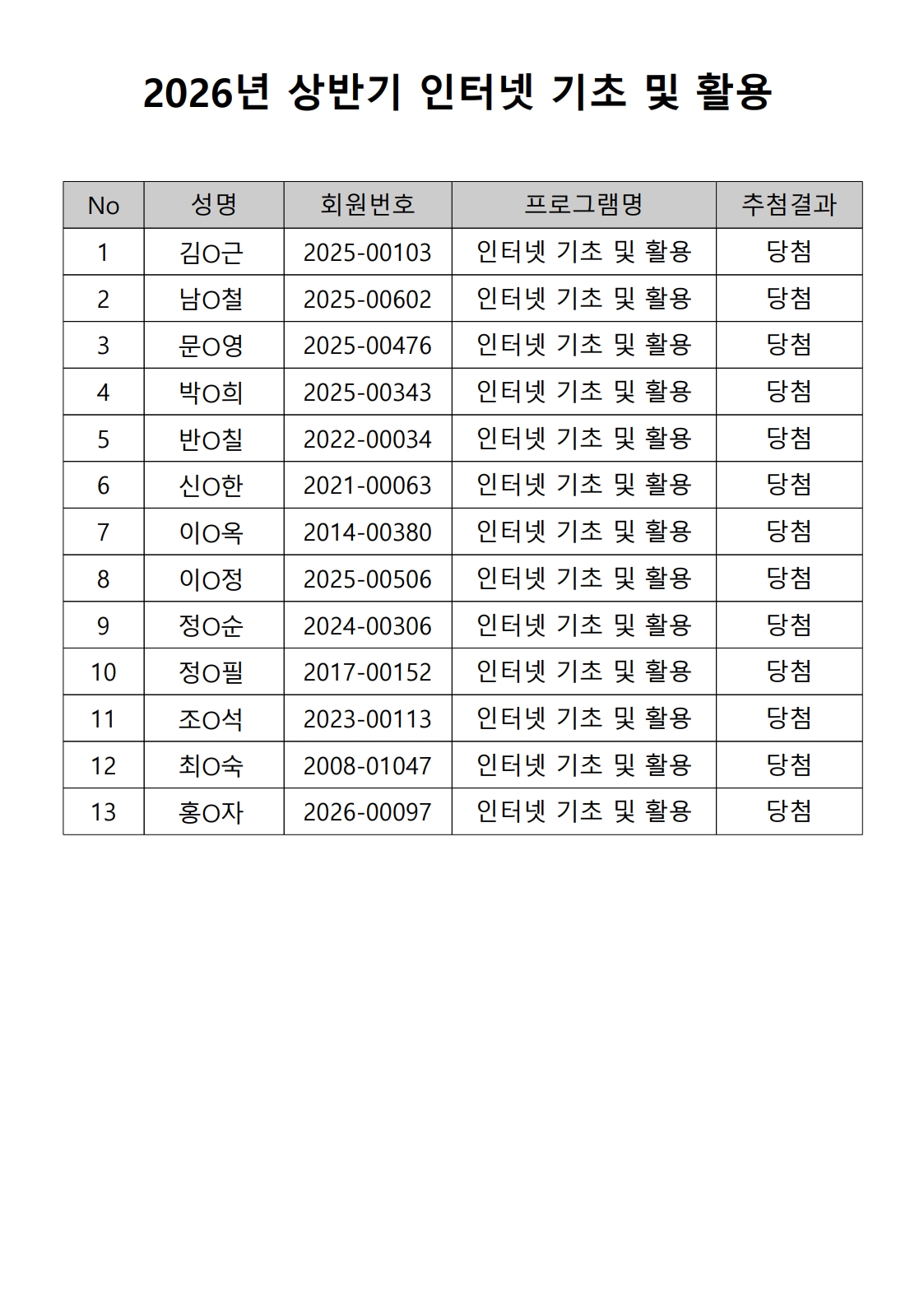 공지 [합격자 발표] 2026년 상반기 노년사회화 및 정보화교육 프로그램 합격자 발표