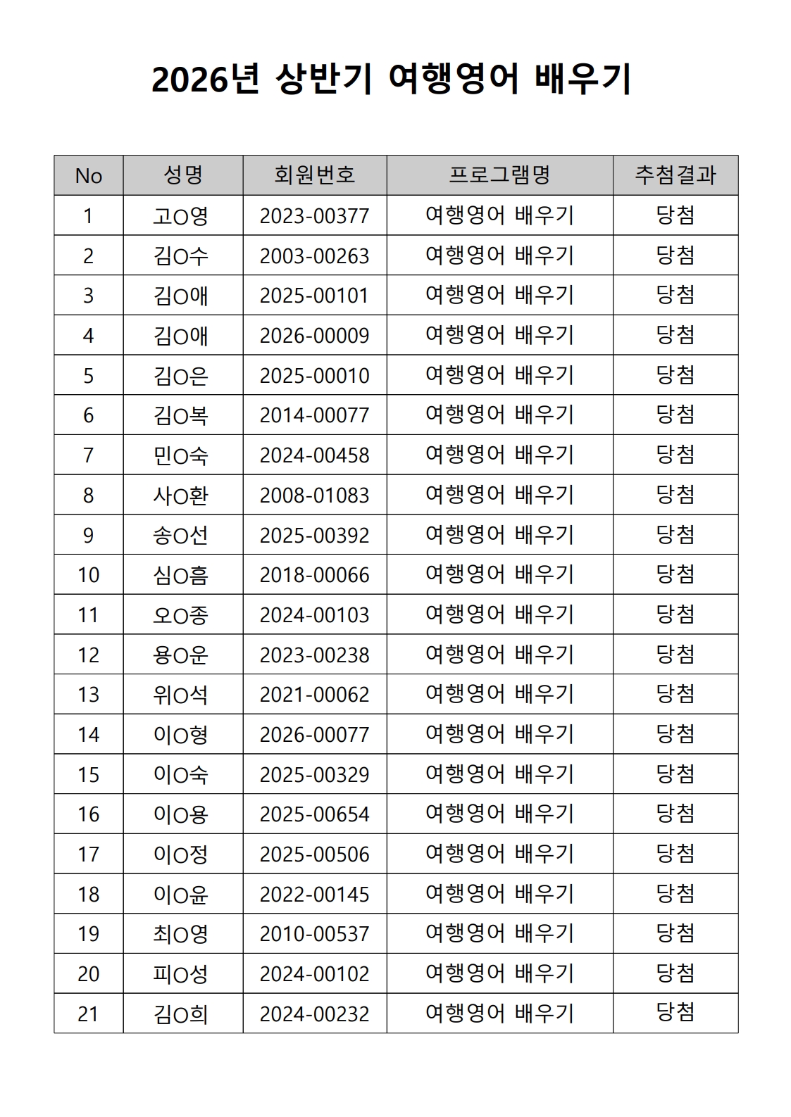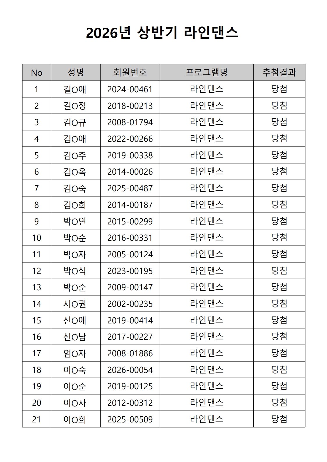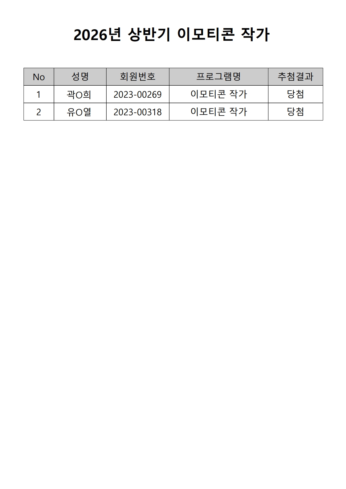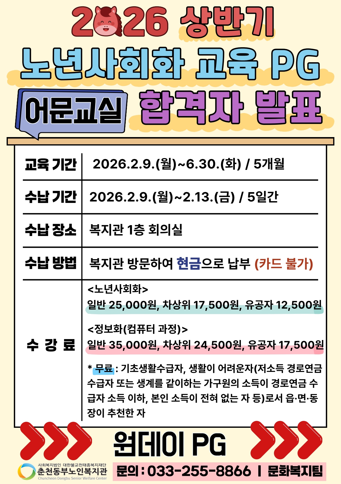 공지 [합격자 발표] 2026년 상반기 노년사회화 및 정보화교육 프로그램 합격자 발표