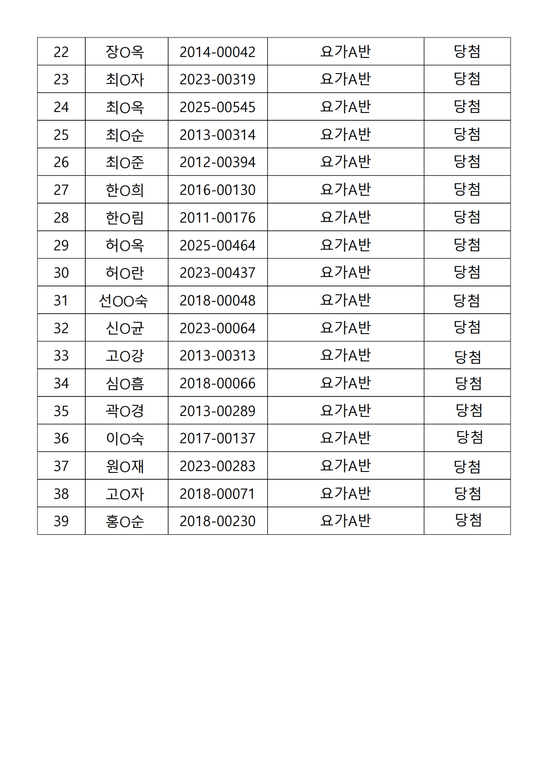 ※ 노년사회화교육 프로그램 중 요가A/B반, 스트레칭 A반, 사교댄스, 한글서예, 어반스케치, 색소폰, 사주명리학, 타로카드, 여행영어 배우기, 영어 팝송 수업은 정원이 초과되었으나 수업의 특성과 공간을 고려하여 신청자 모두 당첨자로 선정되었습니다.