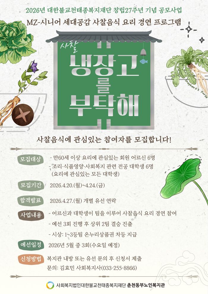 [참여자모집] 2026년 "MZ니어 사찰 냉장고를 부탁해" 참여자 모집