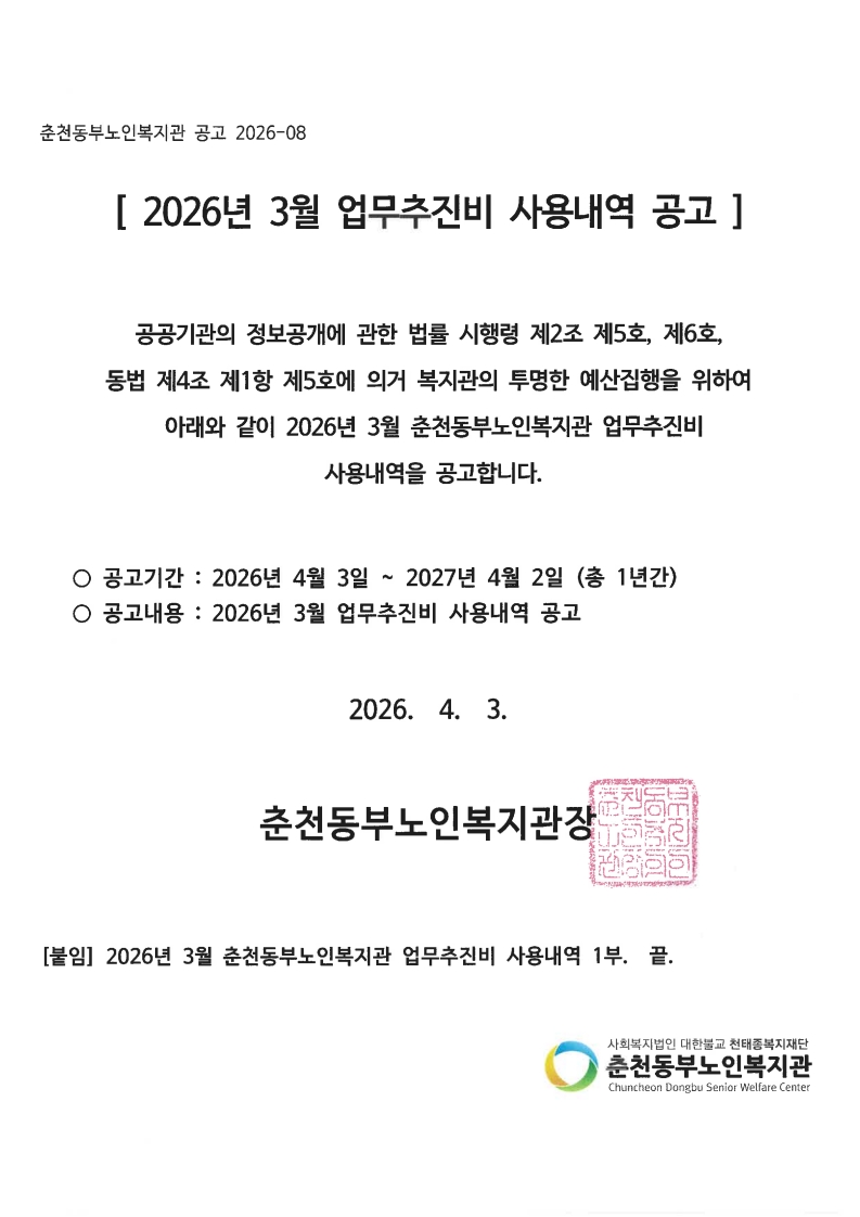 - 이전글 [재정공고]2026년 2월 업무추진비 사용내역 공고 2026.03.05