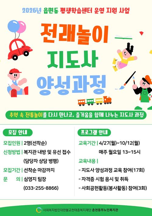 [참여자모집] 전래놀이 지도사 양성과정 참여자 모집(선착순 2명)