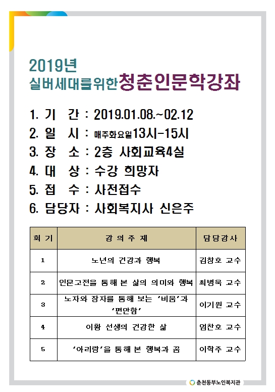 - 다음글 2019년 노인일자리 및 사회활동지원사업 통합모집 안내 2019.08.16