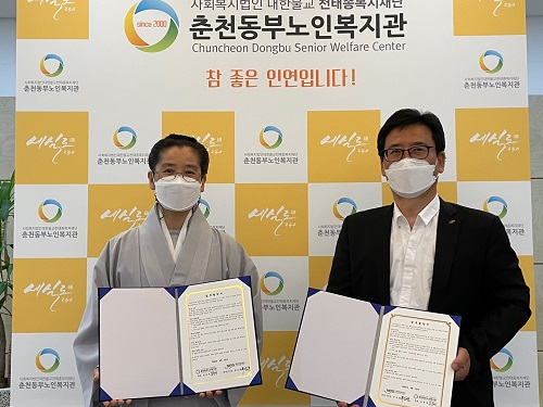 ○ 내 용 : 지역사회 노인복지증진을 위해 춘천동부노인복지관과 국민연금공단 춘천지사가 업무협약을 체결했습니다. 이번 업무협약을 통해 앞으로 어르신들의 노후준비(재무, 건강, 대인관계, 여가)와 관련한 교육과 상담서비스를 제공할 예정입니다.
