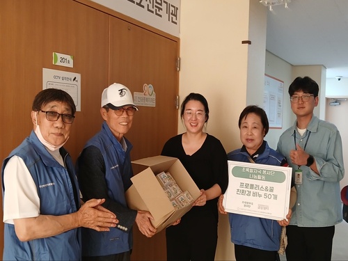 1회기에는 선배시민들이 직접 만들고 포장까지 한 프로폴리스&꿀 비누 50개를 '강원특별자치도 금강쉼터'로 전달하는 나눔봉사활동을 진행하였습니다.