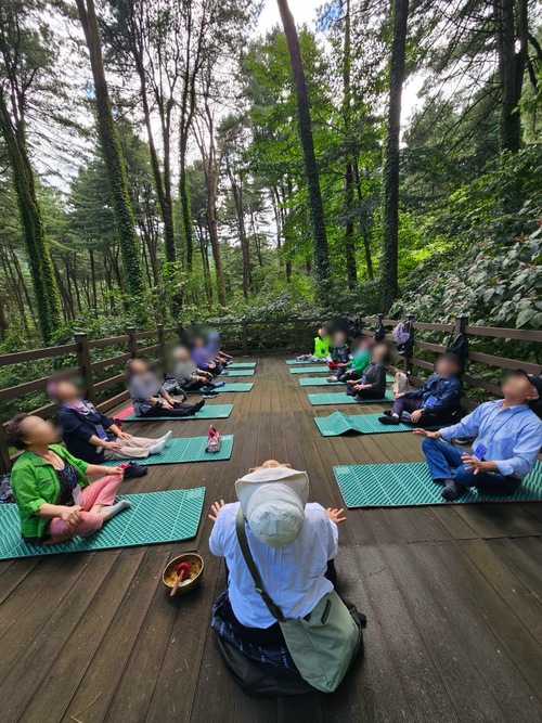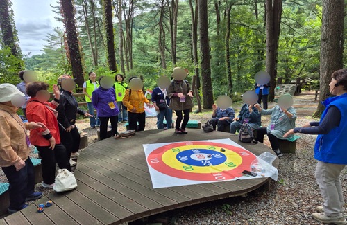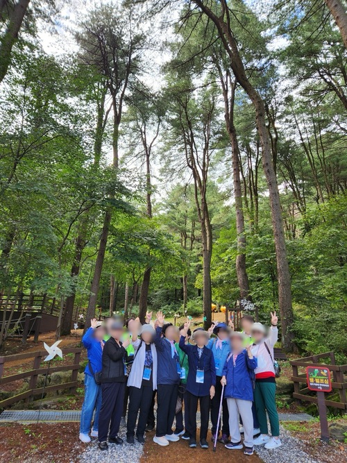 ○ 내 용 : 자연 속에서 몸과 마음을 치유하는 시간을 마련하고자, 노인맞춤돌봄서비스 어르신들과 함께 9월 18일 가평 숲의 약속에서 문화체험 프로그램 「향기로운 동행」을 진행하였습니다. 천연비누 만들기, 숲놀이, 산림치유 프로그램과 더불어 숲속에서의 싱잉볼·명상·요가 체험은 어르신들께 큰 힐링의 시간을 선물하였습니다. 또한 투호놀이와 오제미놀이, 그리고 제철 나물로 준비된 비빔밥 점심은 일상에 활력을 더하는 즐거운 추억이 되었습니다.비가 지난 뒤 한층 맑아진 공기와 싱그러운 숲 향기를 만끽하며, 단조로운 일상에서 벗어나 몸과 마음을 위로받는 뜻깊은 시간이 되셨길 바랍니다. 앞으로도 어르신들의 건강하고 행복한 삶을 위해 노력하는 노인맞춤돌봄서비스가 되겠습니다.
