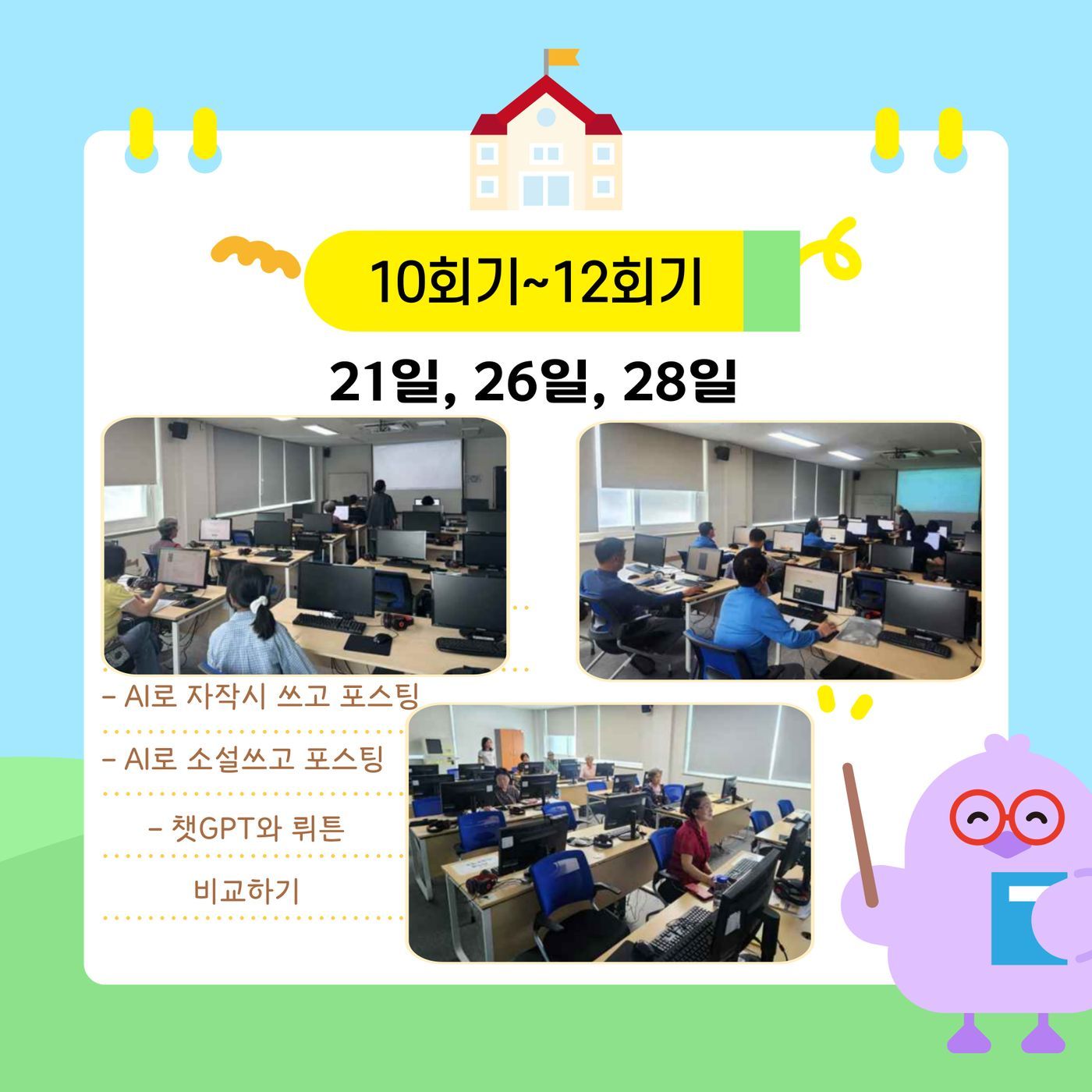 본격적인 양성과정에 돌입하여, AI로 자작시 쓰고 포스팅, AI로 소설쓰고 포스팅, 챗GPT와 뤼튼 비교하기 등의 학습으로 진행되었습니다.