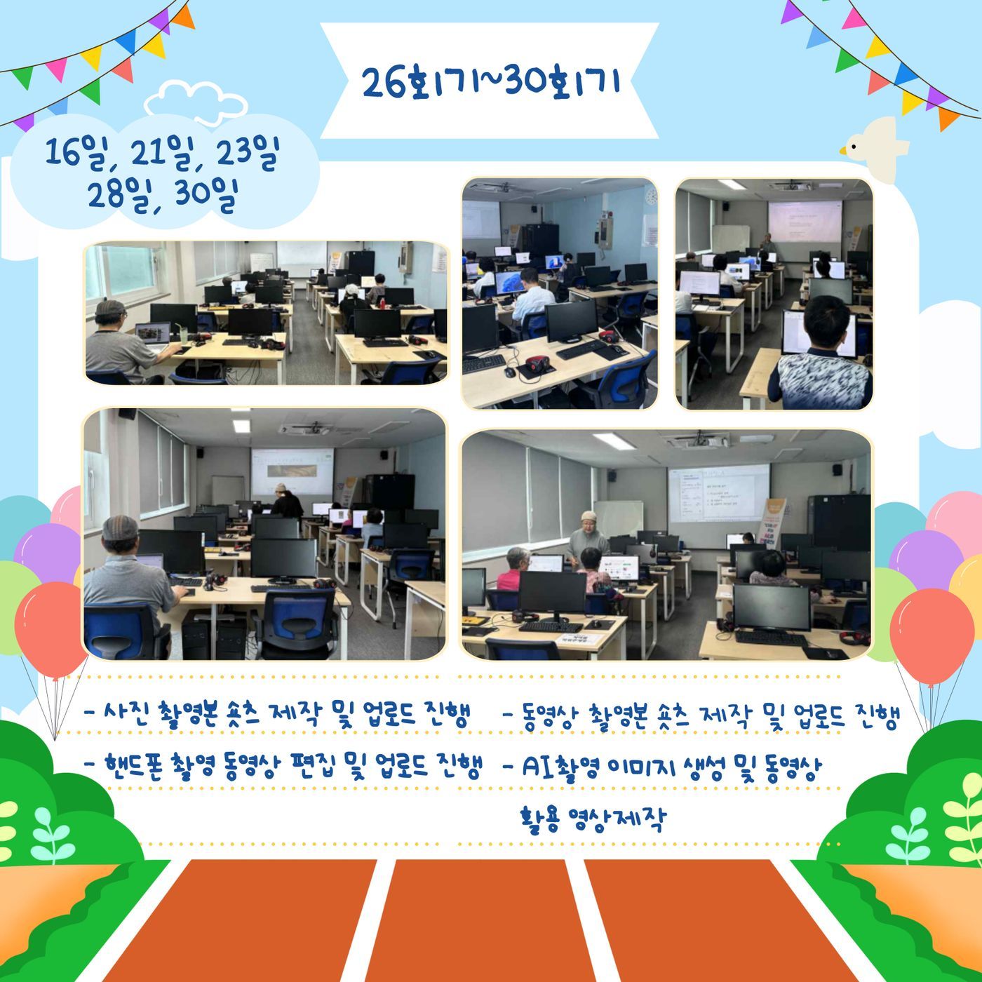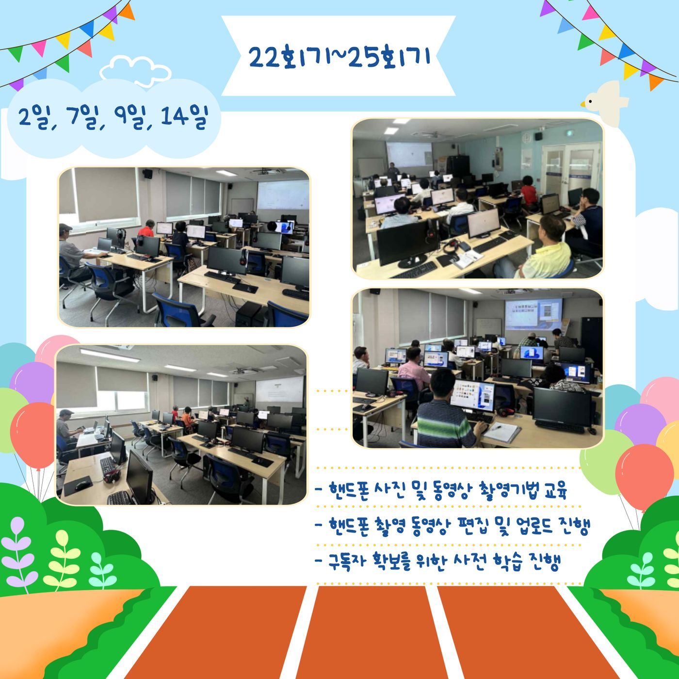 ○ 내 용 : 국민연금 나눔재단의 지원받아 진행되는 국민연금 수급자 아카데미 지원사업 "시니어 인플루언서 양성과정" 22회기~30회기가 진행되었습니다!!