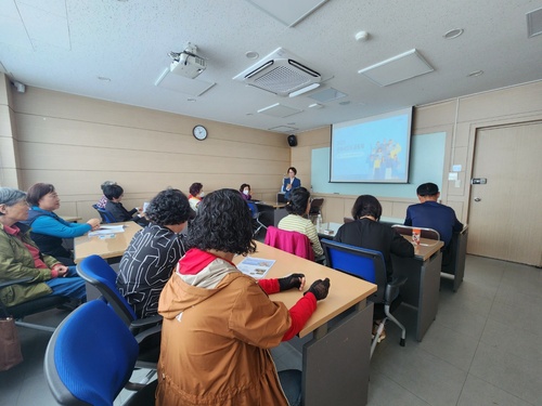 ○ 내 용 : 한국노인복지관협회 소속 홍인숙 강사님이 선배시민 필수교육 강의를 진행해주셨습니다. '선배시민과 공동체'라는 주제로 로 사업 및 봉사단에 대한 이해도를 향상시키고, 선배시민 활동가로써의 능력을 배양하는 시간을 가졌습니다.