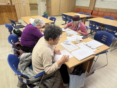 11월 24일에는 어르신들끼리 좋아하는 트로트 곡을 선택해서 직접 인권 관련 요소를 넣어 개사해보는 시간을 가졌답니다.