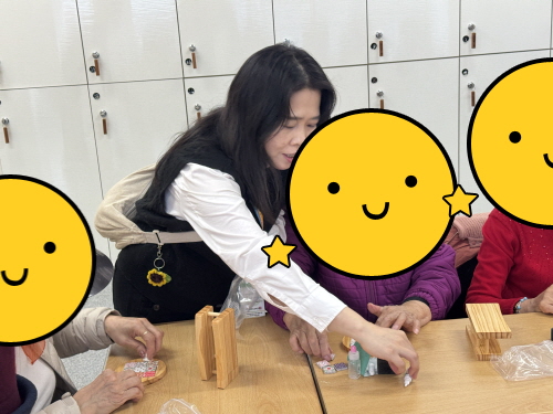 ○ 내 용 : 노인맞춤돌봄 특화서비스 어르신들을 대상으로 자조모임을 계획하여 1회기 미니도마 만들기 체험 진행하였습니다.