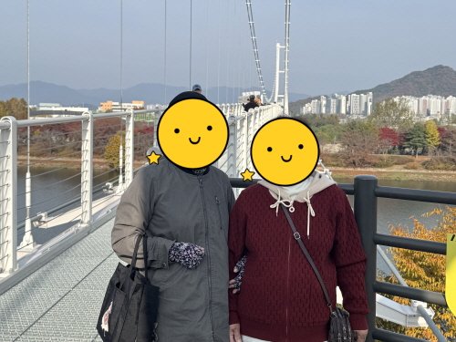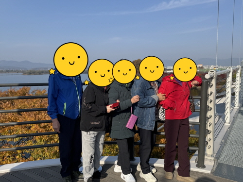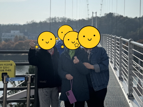 ○ 내 용 : 노인맞춤돌봄 특화서비스 어르신들을 대상으로 자조모임을 계획하여 3회기 출렁다리 걷기 진행하였습니다.
