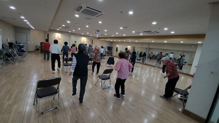 *무릎이 불편한 분들은 의자에 앉아 따라하도록 하여 낙상을 방지하였음.